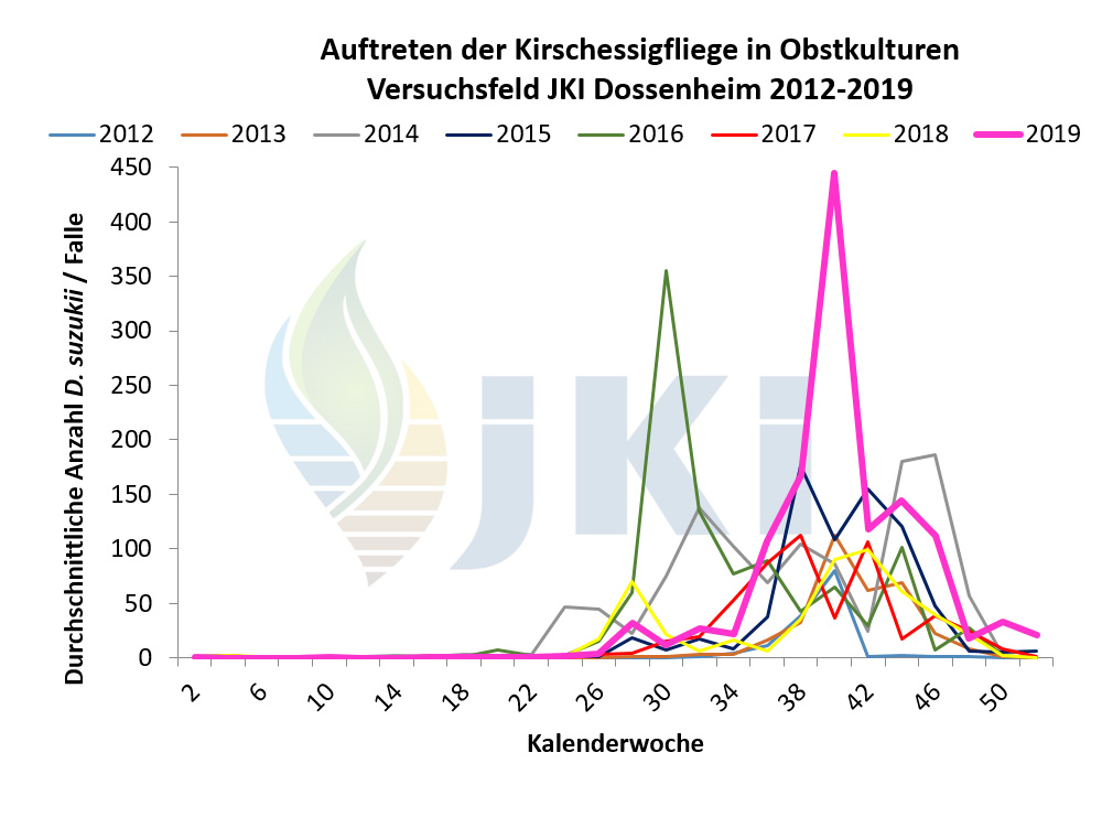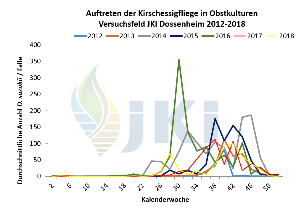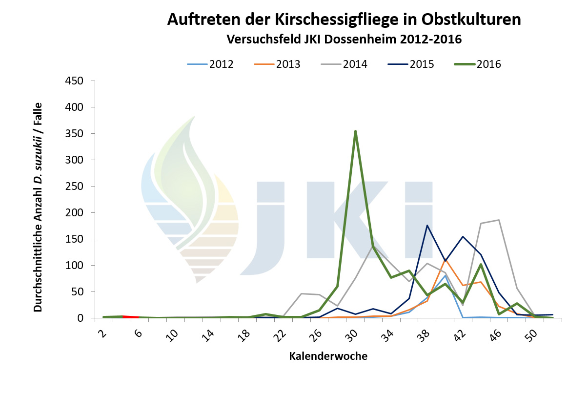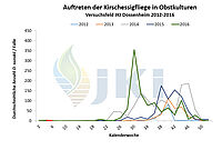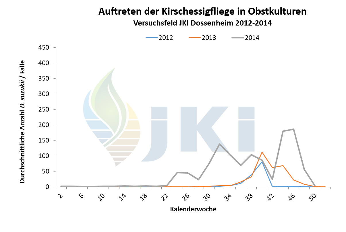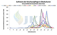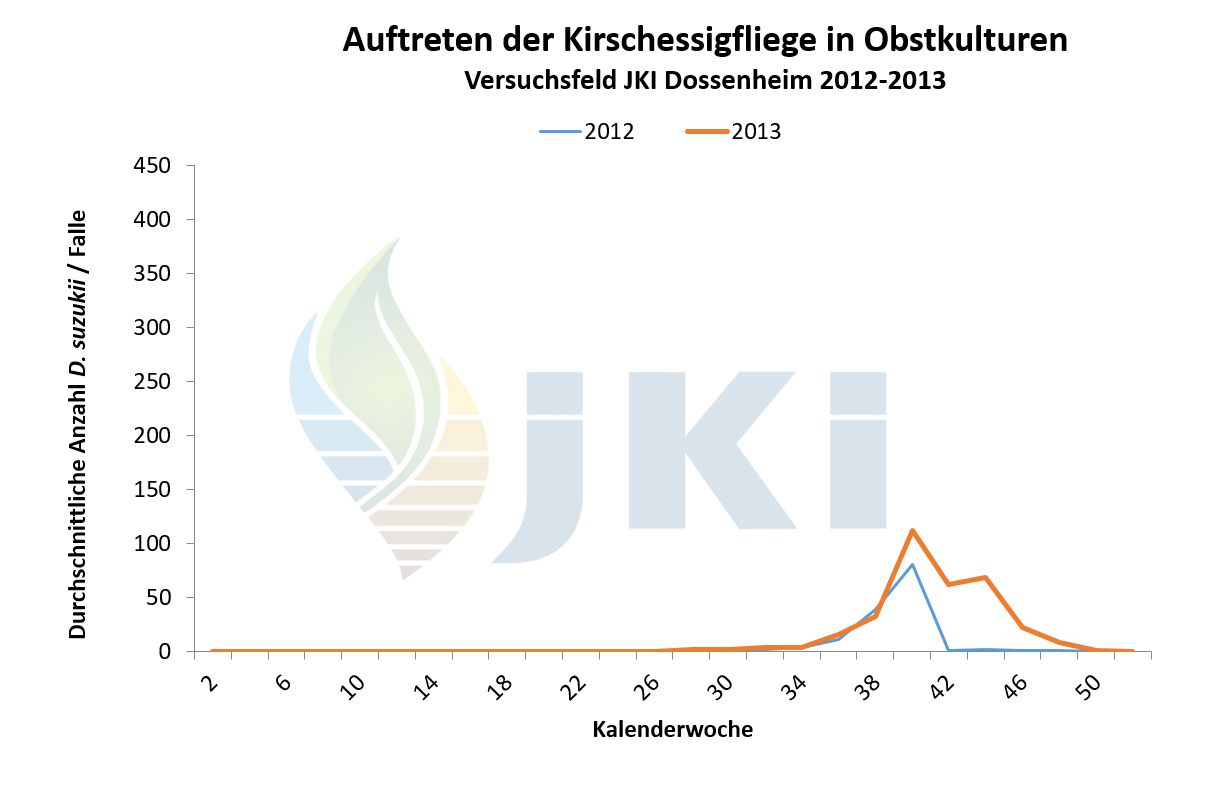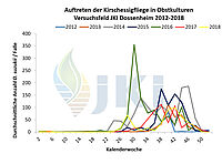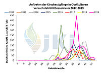 Auftreten Drosophila suzukii in Obstkulturen - Versuchsfeld Dossenheim ab 2012
