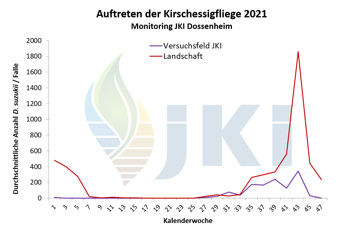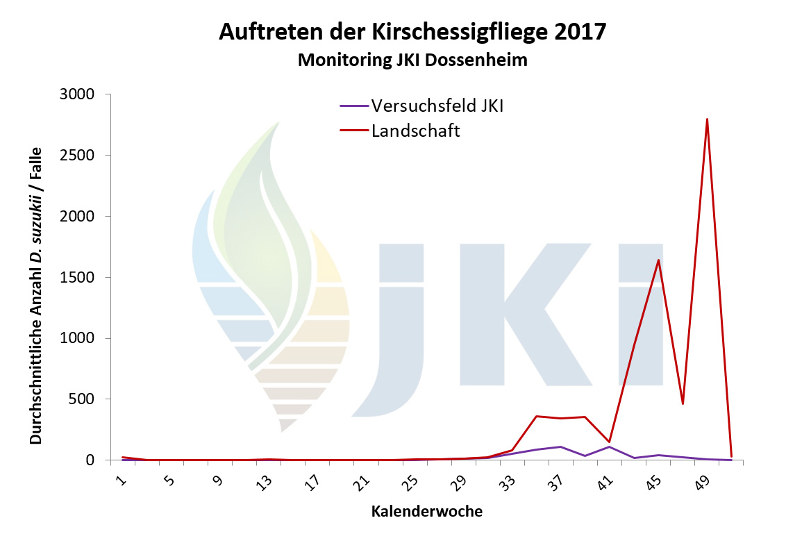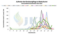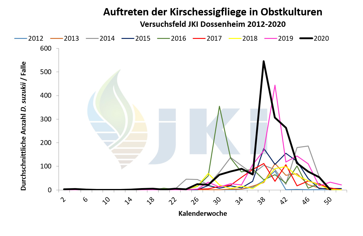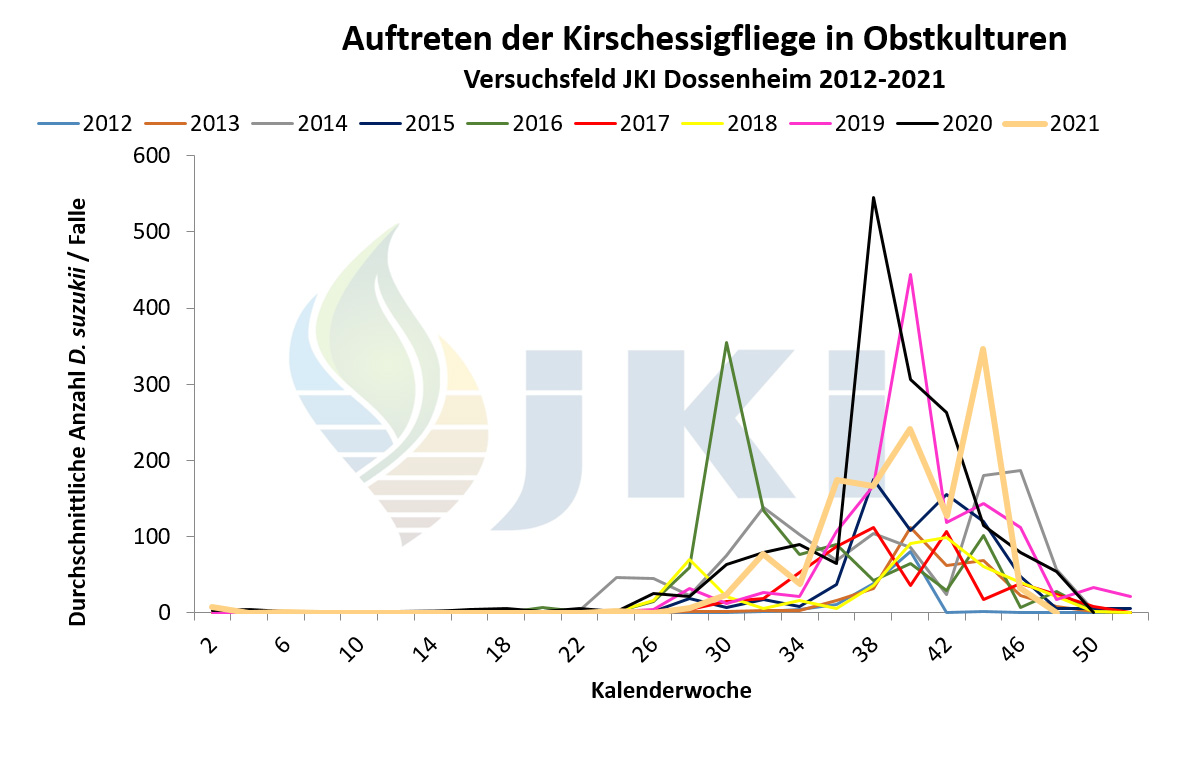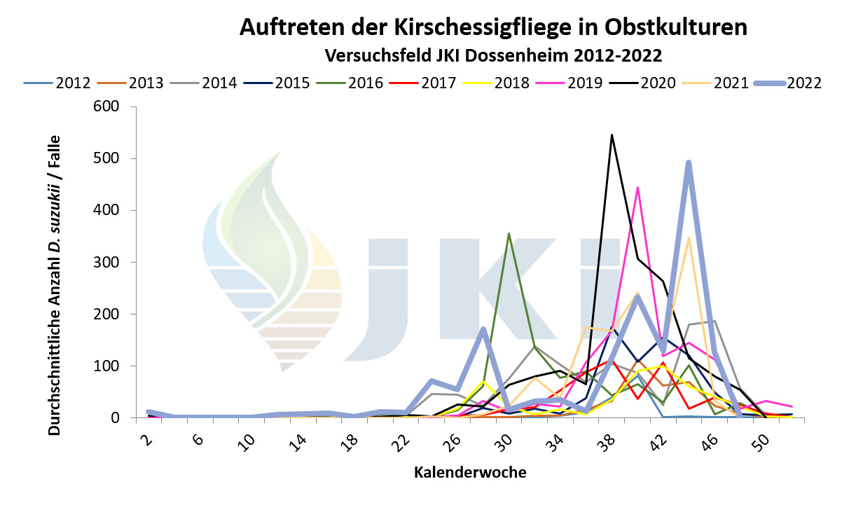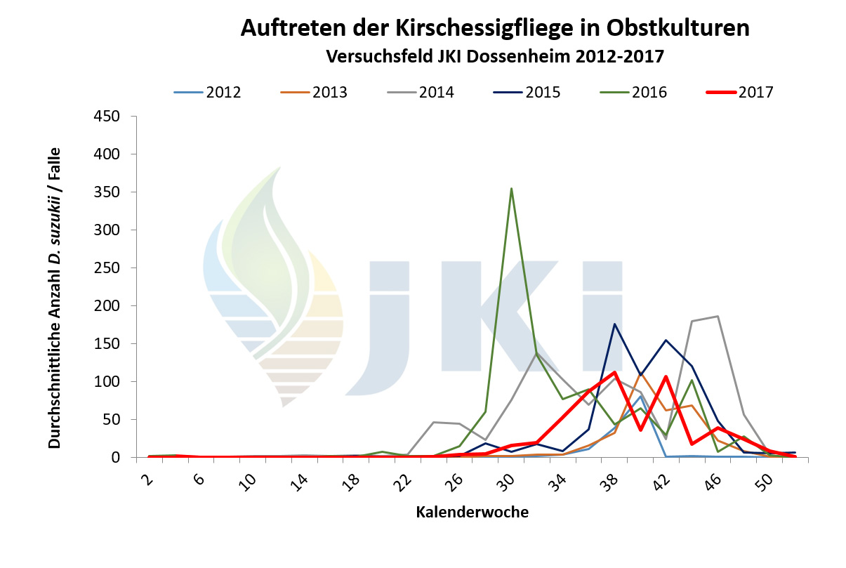 Auftreten Drosophila suzukii in Obstkulturen - Versuchsfeld Dossenheim ab 2012