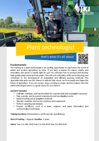 The training to become a Plant Technologist is an exciting opportunity to experience the world of plants and modern agriculture up close. If you have a passion for nature, plants, and innovation, this career is exactly right for you! You will learn how to produce and develop high-quality plant seeds, young plants, and plant protection products. You will work with state-of-the-art technology and help develop sustainable and efficient cultivation methods. This training gives you the chance to actively contribute to securing our food supply and to shape the future of agriculture. If you are curious, enjoy working in a team, and love nature, then the Plant Technologist career is a great choice for your future!