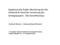 Hoffmann B., Reiners E., Kienzle J., Patzwahl W., Weihrauch F.:Ergebnisse des Kupfer-Monitoring der Bioverbände in Deutschland/Copper-monitoring of organic farmer associations in Germany