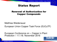 Matthias Weidenauer, European Union Copper Task Force: Status Report: Renewal of Approval forCopper Compounds